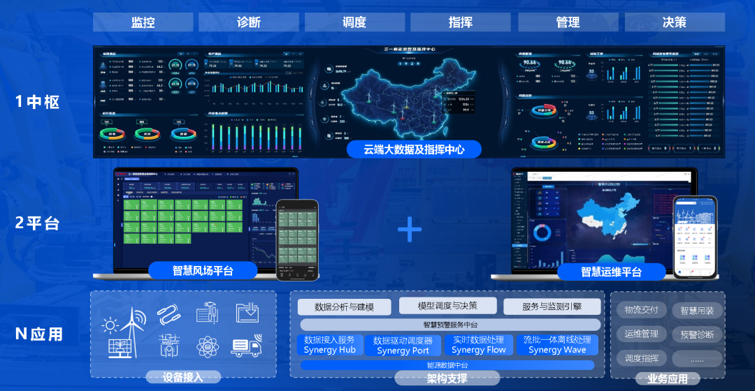 三一重能基于物聯(lián)網(wǎng)、大數(shù)據(jù)、人工智能等先進(jìn)信息化技術(shù),構(gòu)建了“1中樞、2平臺(tái)、N應(yīng)用”的數(shù)字化場(chǎng)站管理模式,實(shí)現(xiàn)風(fēng)場(chǎng)區(qū)域全場(chǎng)景的智慧化管理。依靠風(fēng)機(jī)診斷與故障預(yù)警模型,對(duì)機(jī)組實(shí)時(shí)進(jìn)行健康診斷,實(shí)現(xiàn)對(duì)故障的提前預(yù)判,通過“預(yù)測(cè)、預(yù)警、預(yù)檢、預(yù)修”的預(yù)防性運(yùn)維舉措,減少計(jì)劃外停機(jī)時(shí)長(zhǎng)及次數(shù),降低發(fā)電量損失。