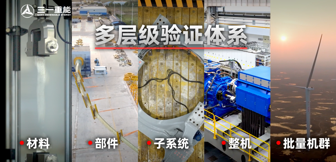 為保障機(jī)組長(zhǎng)達(dá)20年服役生涯中的可靠性,三一重能自建四大風(fēng)電試驗(yàn)基地,建立起涵蓋風(fēng)機(jī)材料、部件、子系統(tǒng)、整機(jī)及批量機(jī)群的全方位驗(yàn)證體系,依靠嚴(yán)苛的試驗(yàn)標(biāo)準(zhǔn),將風(fēng)場(chǎng)驗(yàn)證前移,充分論證部件與整機(jī)可靠性,鍛造風(fēng)機(jī)“強(qiáng)健體魄”。