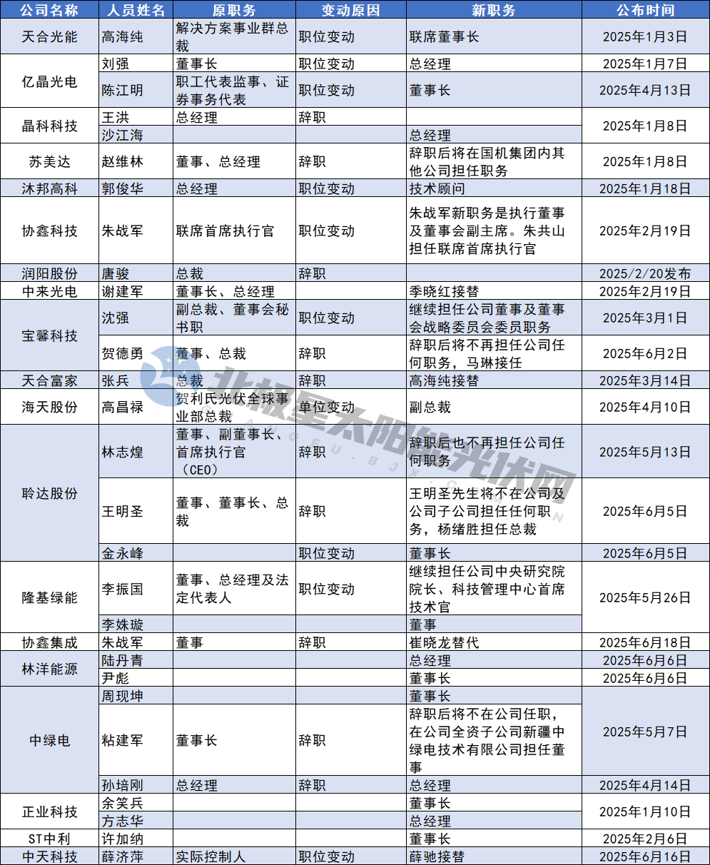 2025即將過(guò)半,光伏行業(yè)在內(nèi)的能源行業(yè)人事調(diào)整潮仍在繼續(xù),“一把手”調(diào)整尤為密集。