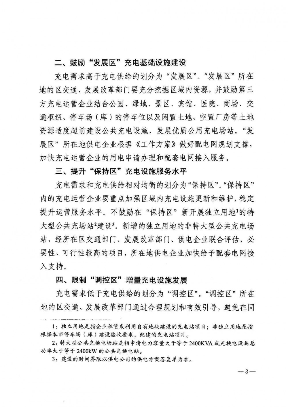 充電需求和充電供給相對(duì)均衡的劃分為“保持區(qū)”“保持區(qū)”內(nèi)的充電運(yùn)營(yíng)企業(yè)要重點(diǎn)加強(qiáng)區(qū)域內(nèi)充電設(shè)施更新和維護(hù),穩(wěn)定提升運(yùn)營(yíng)服務(wù)水平。不鼓勵(lì)在“保持區(qū)”新開(kāi)展獨(dú)立用地'的特大型公共充場(chǎng)站建設(shè)。新增的獨(dú)立用地的非特大型公共充電場(chǎng)站,經(jīng)所在區(qū)交通部門(mén)、發(fā)展改革部門(mén)、供電企業(yè)聯(lián)合評(píng)估,必要性、可行性較高的項(xiàng)目,所在地供電企業(yè)加快給予配套電網(wǎng)接入支持。