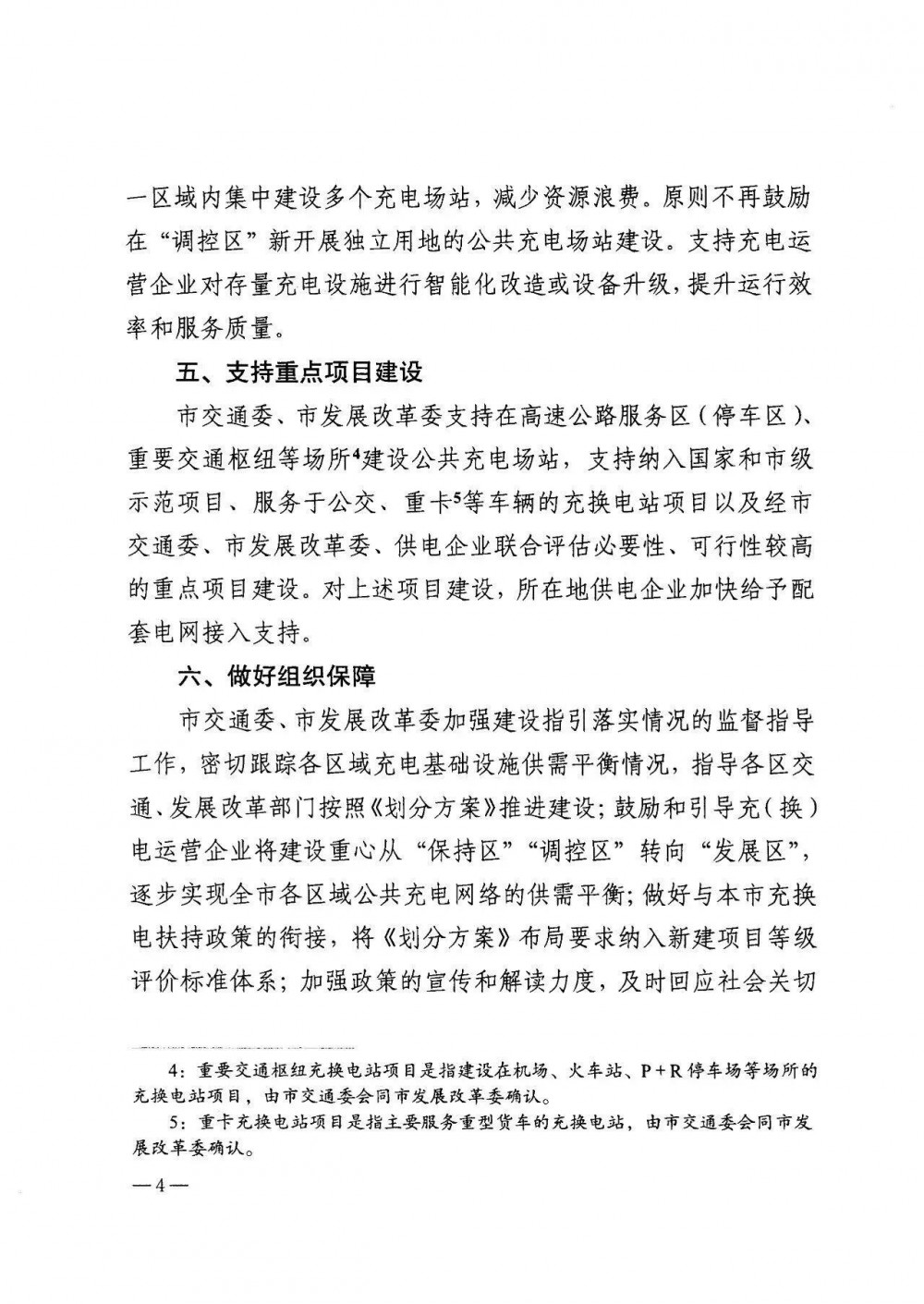 市交通委、市發(fā)展改革委支持在高速公路服務(wù)區(qū)(停車(chē)區(qū))、重要交通樞紐等場(chǎng)所建設(shè)公共充電場(chǎng)站,支持納入國(guó)家和市級(jí)示范項(xiàng)目、服務(wù)于公交、重卡等車(chē)輛的充換電站項(xiàng)目以及經(jīng)市交通委、市發(fā)展改革委、供電企業(yè)聯(lián)合評(píng)估必要性、可行性較高的重點(diǎn)項(xiàng)目建設(shè)。對(duì)上述項(xiàng)目建設(shè),所在地供電企業(yè)加快給予配套電網(wǎng)接入支持。