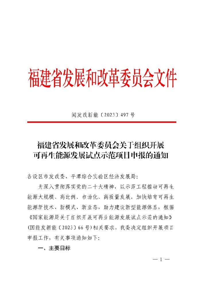 日前,福建省發(fā)展和改革委員會關(guān)于組織開展可再生能源發(fā)展試點示范項目申報的通知。