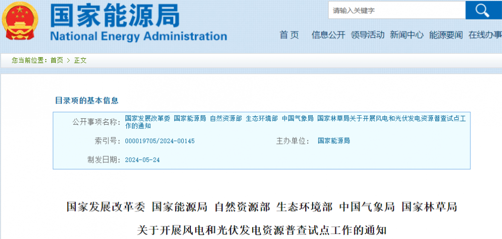 6月6日,國(guó)家發(fā)展改革委 國(guó)家能源局 自然資源部 生態(tài)環(huán)境部 中國(guó)氣象局 國(guó)家林草局發(fā)布《關(guān)于開展風(fēng)電和光伏發(fā)電資源普查試點(diǎn)工作的通知》。