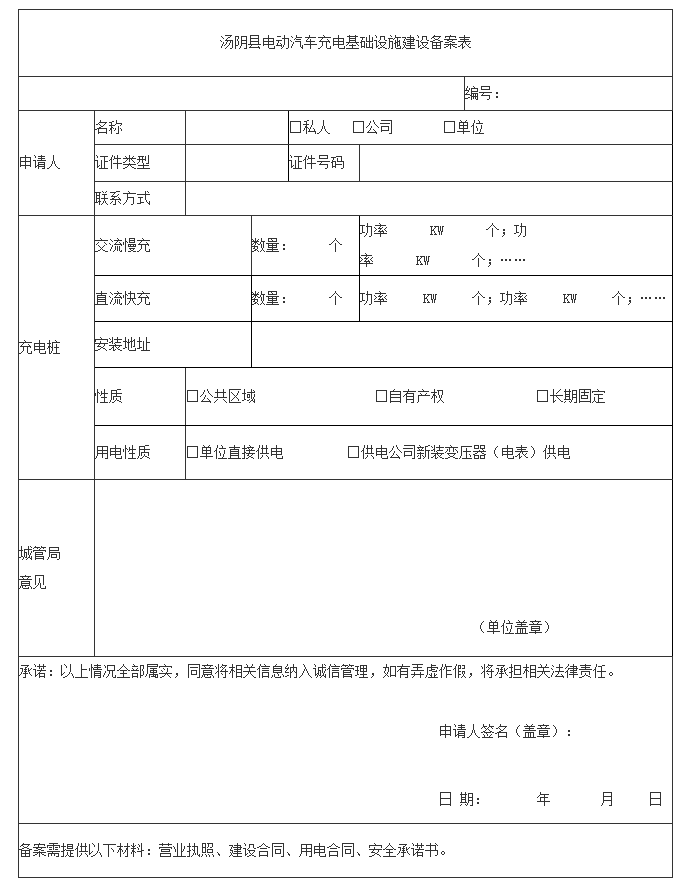 附件:湯陰縣電動(dòng)汽車(chē)充電基礎(chǔ)設(shè)施建設(shè)備案表