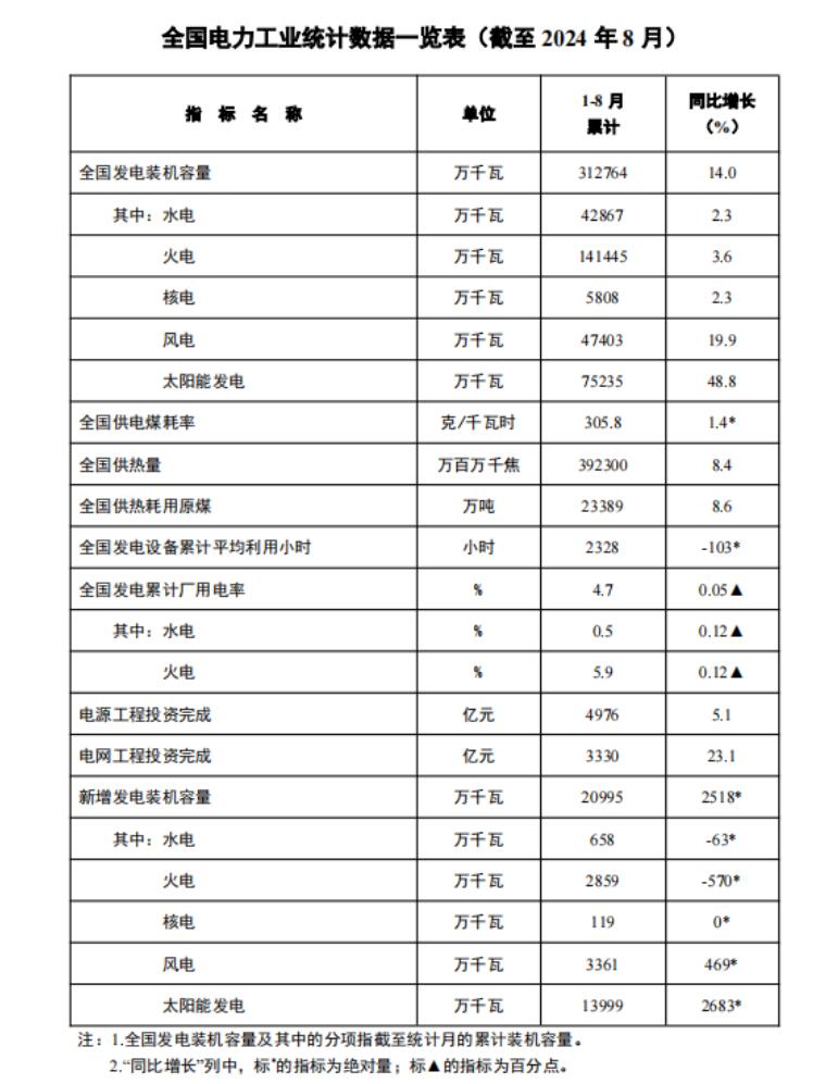 9月23日,國家能源局發(fā)布1-8月份全國電力工業(yè)統(tǒng)計數(shù)據(jù)。