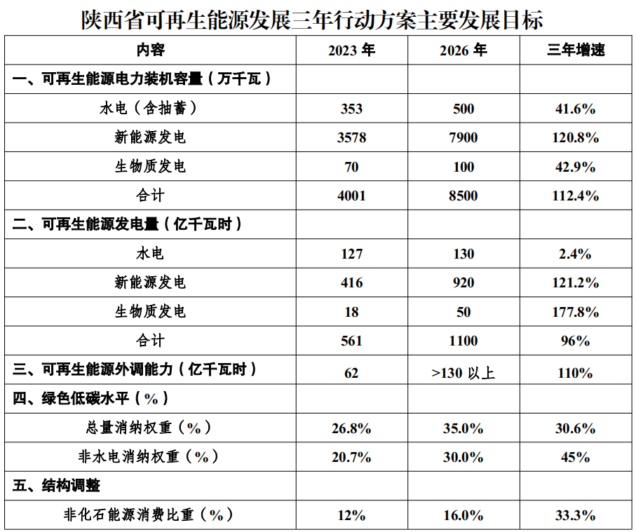 日前,陜西省發(fā)改委印發(fā)《關(guān)于印發(fā)陜西省可再生能源發(fā)展三年行動(dòng)方案(2024—2026)的通知》,初步規(guī)劃預(yù)計(jì)到2026年省內(nèi)新能源裝機(jī)規(guī)模達(dá)79GW,增速120.8%。