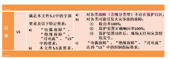 “監(jiān)測規(guī)范”的編制亮點在于,分級設(shè)防,明確電氣安全設(shè)防等級及相關(guān)技術(shù)要求。其中,“L3”等級為現(xiàn)行標準中的適用要求,“L4”等級為標準中未規(guī)定或標準應(yīng)用有效性不夠時,增加、加嚴某些要求;“L5”等級則按全場景應(yīng)用的未來目標,進一步增加、加嚴某些方面要求。如“L5”等級要求,對各類故障(含細分類型)不存在保護盲區(qū),對各類可能引發(fā)火災(zāi)事故的故障要實現(xiàn)檢出率100%、保護裝置正確響應(yīng)率100%、保護裝置動作后,現(xiàn)場無任何災(zāi)患情況發(fā)生;同時電弧故障、絕緣故障、過電流要達到“L5”中的控制指標要求。