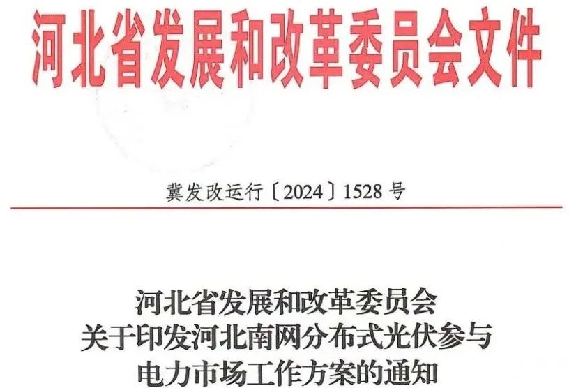 11月19日,河北省發(fā)改委印發(fā)關(guān)于《河北南網(wǎng)分布式光伏參與電力市場(chǎng)工作方案》的通知。通知明確,以2030年新能源上網(wǎng)電量全面參與市場(chǎng)交易為目標(biāo),遵循“先增量后存量、先商用后戶用、先試點(diǎn)后推廣”的原則有序、分類地推動(dòng)分布式光伏入市,最終實(shí)現(xiàn)與集中式新能源的入市電量比例相同,逐步引導(dǎo)分布式光伏合理承擔(dān)系統(tǒng)調(diào)峰、調(diào)頻等消納成本。