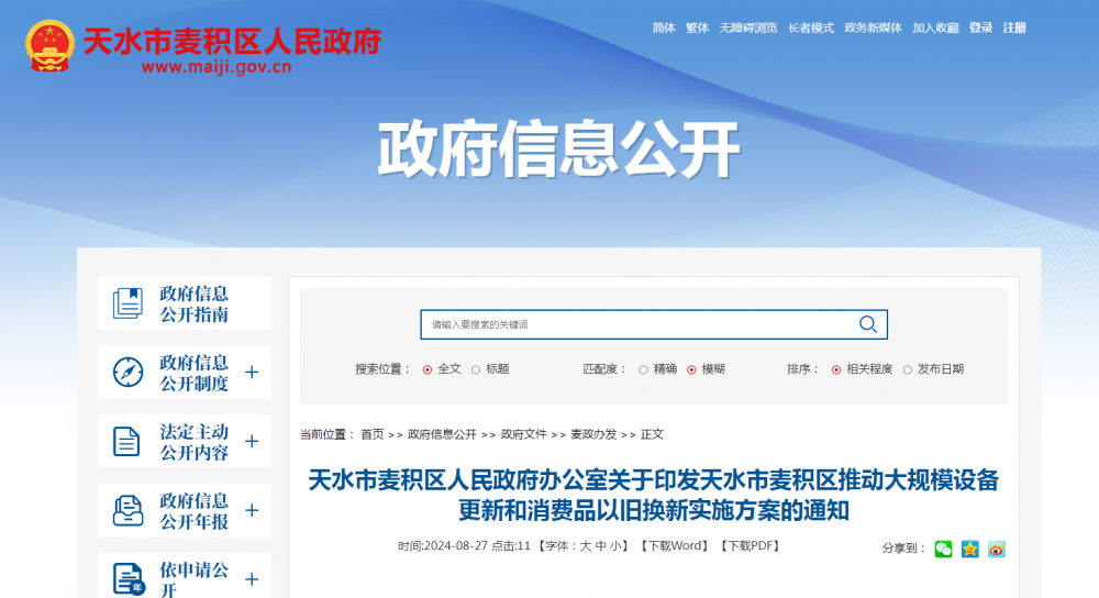 天水市麥積區(qū)推動(dòng)大規(guī)模設(shè)備更新和消費(fèi)品以舊換新實(shí)施方案